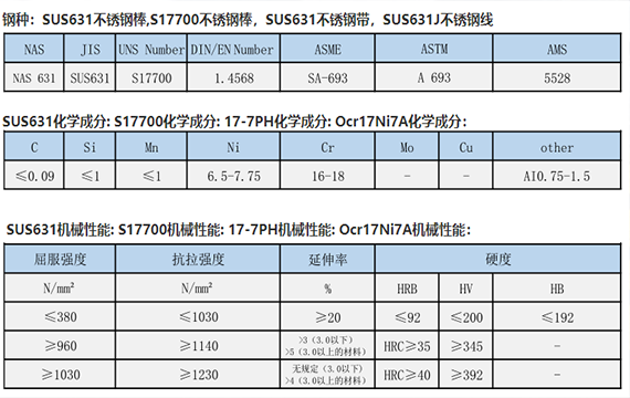 不銹鋼SUS631與SUS630什么區(qū)別 日本SUS631(17-7PH國標(biāo)0Cr17Ni7Al)是一種彌散硬化不銹鋼,高強(qiáng)度高硬度,抗疲勞,具有良好的耐腐蝕性和可模鍛性,以及遇高溫和很少變形,此鋼性能良好,